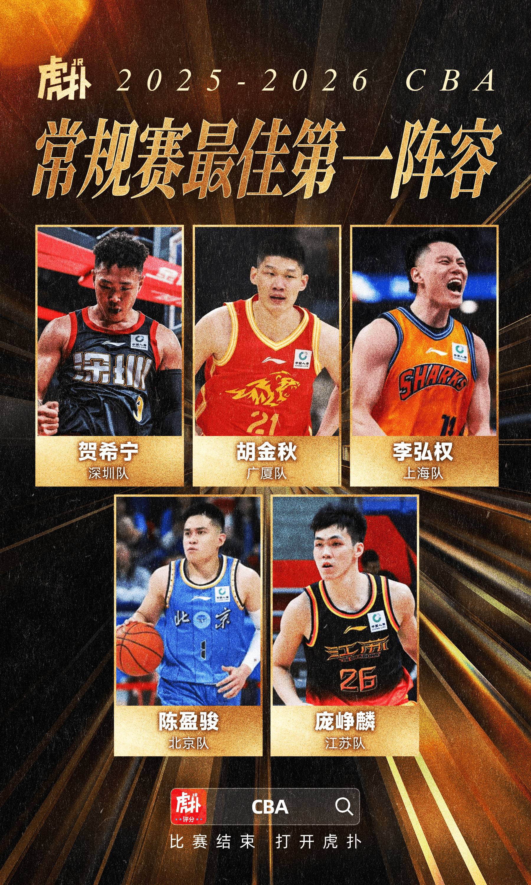 [流言板]CBA国内球员一阵:胡金秋、贺希宁、李弘权、庞峥麟、陈盈骏