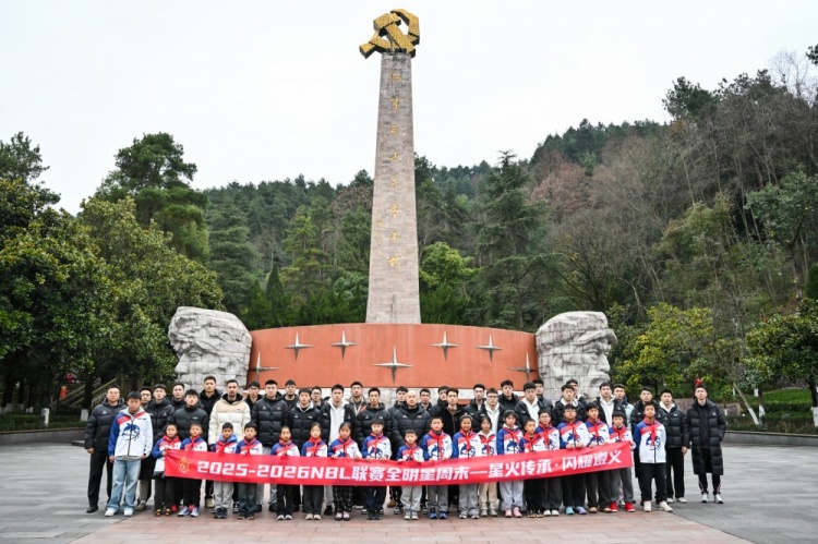 “传承”的动人篇章在赛场内外悄然续写。比赛前一日下午,“星火传承 红色篮途”爱国教育活动在遵义展开。在中国篮球协会竞赛部部长肖红安的带领下,参与NBL全明星周末的球员与教练们走进遵义会议会址纪念馆。他们在一张张老照片、一件件旧物前驻足凝视,仿佛触摸到那段滚烫的历史,深刻感受到遵义会议在紧要关头点亮革命前路的重要意义。随后,队伍前往遵义红军烈士陵园,与贵州的少先队员并肩而立,共同向长眠于此的英烈敬献花篮。这一刻,高大的身影与稚嫩的肩膀并肩,坚定的目光与清澈的眼神交汇,无声诉说着跨越时代的对话。